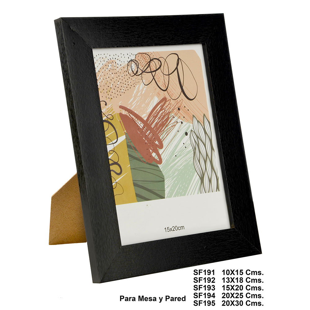 Marco en poliuretano y vidrio con soporte para mesa y pared