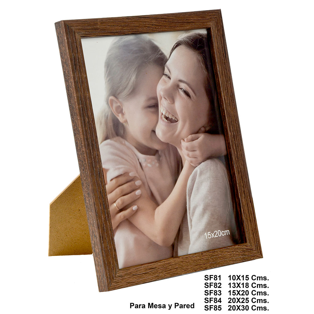 Marco en poliuretano y vidrio con soporte para mesa y pared